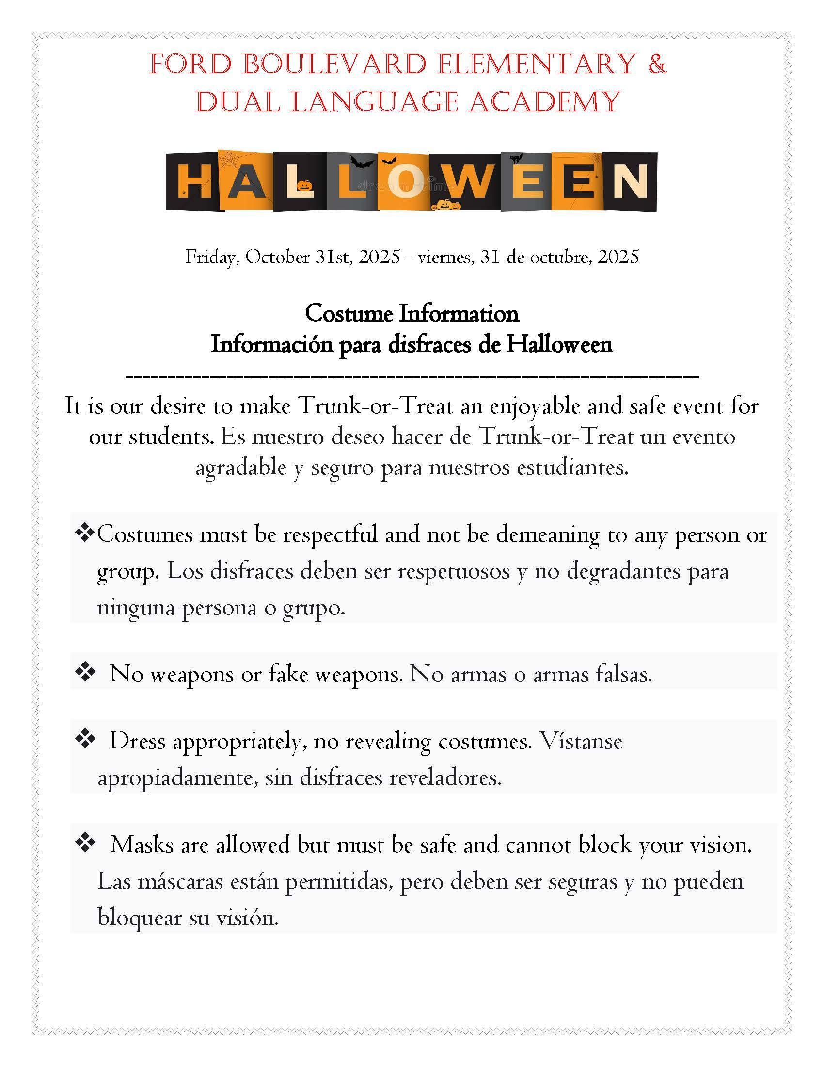 Halloween Costume Information / Información Para Disfraces de Halloween